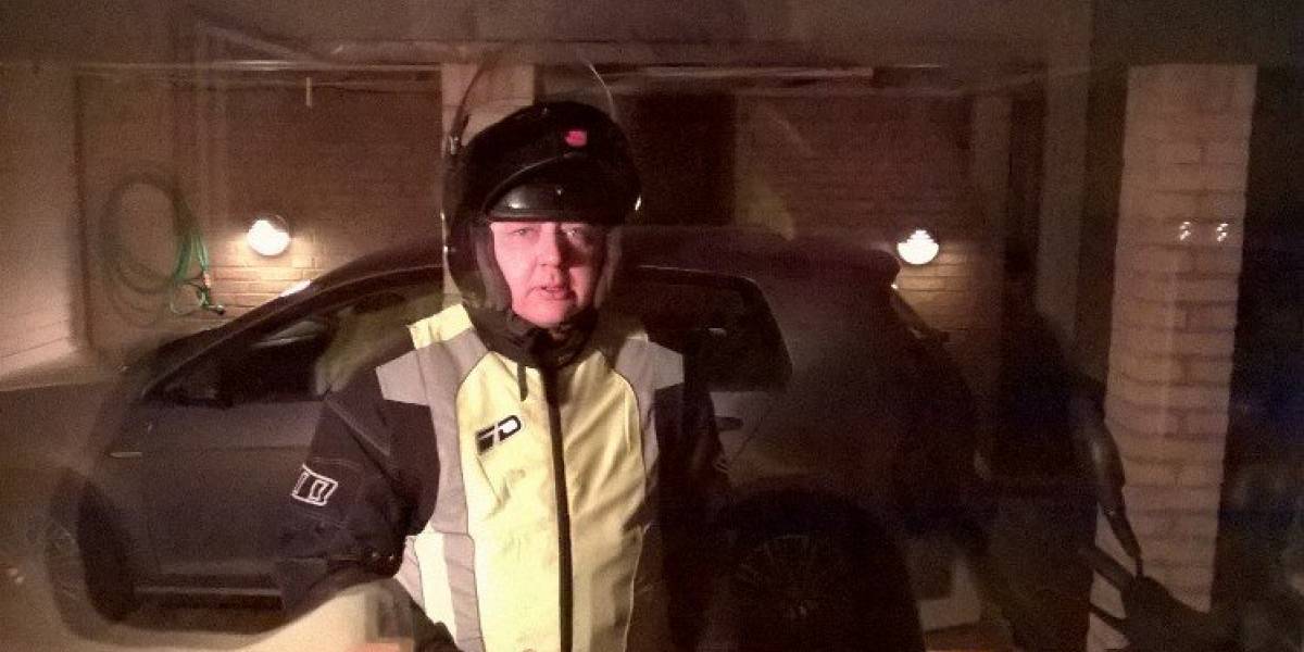 - Muligvis iført en refleksvest, som han har på, når han kører på sin knallert